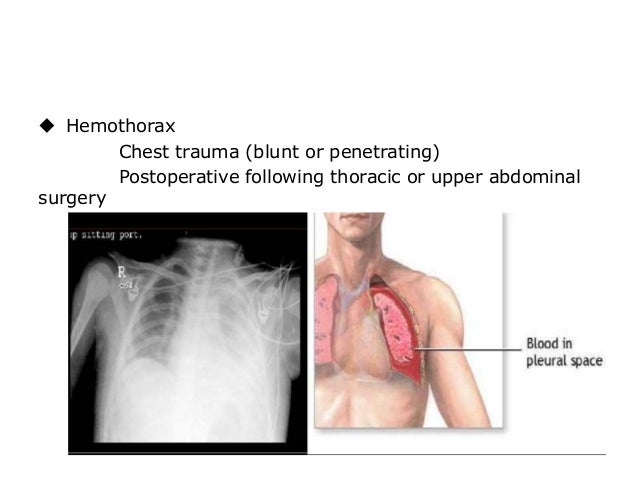 Hemothorax. Causes, symptoms, treatment Hemothorax from dxline.info However, posterior chest tubes have a tendency to act as nonfunctional drains for the evacuation of pneumothoraces, and additional chest tube may be required. Hess d, macintyre n, mishoe s, et al. See full list on rtmagazine.com